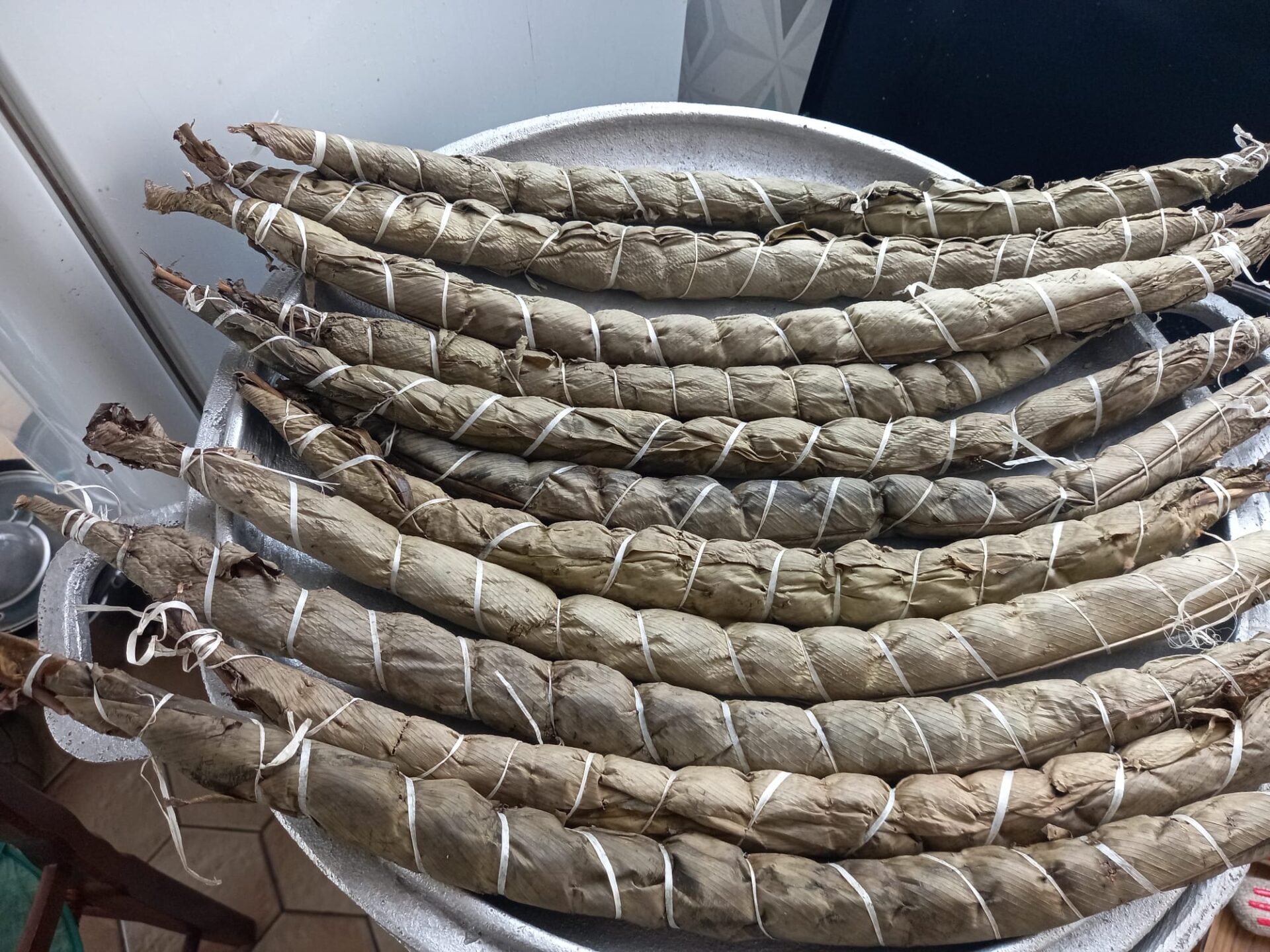 A base de tubercules de manioc fermentées, il s’agit d’une pâte précuite et enveloppée dans des feuilles naturelles.