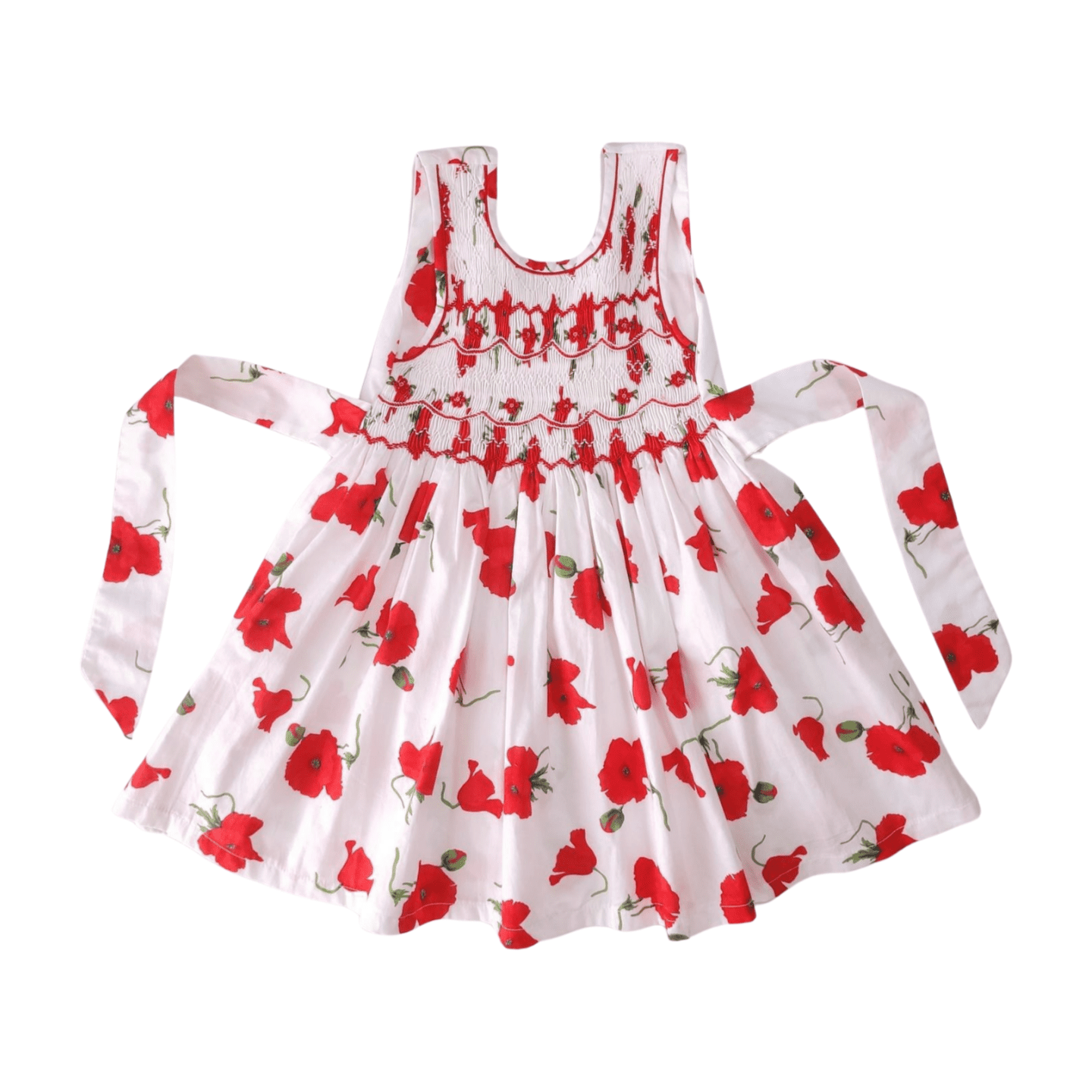 Robe Smock Liberty Enfant, Motif Printanier, Coton, Fait Main à Madagascar, Dos Croisé